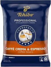 Der Tchibo Cafe Crema & Espresso / Grande besteht zu 85 % aus feinsten Arabica und 15 % aus Robusta Bohnen. Hochwertige Gastronomie und Office Kaffeebohnen. Die Mindestabnahme bei uns, beträgt 1 Karton dieser Bohnen mit 10 Packungen.